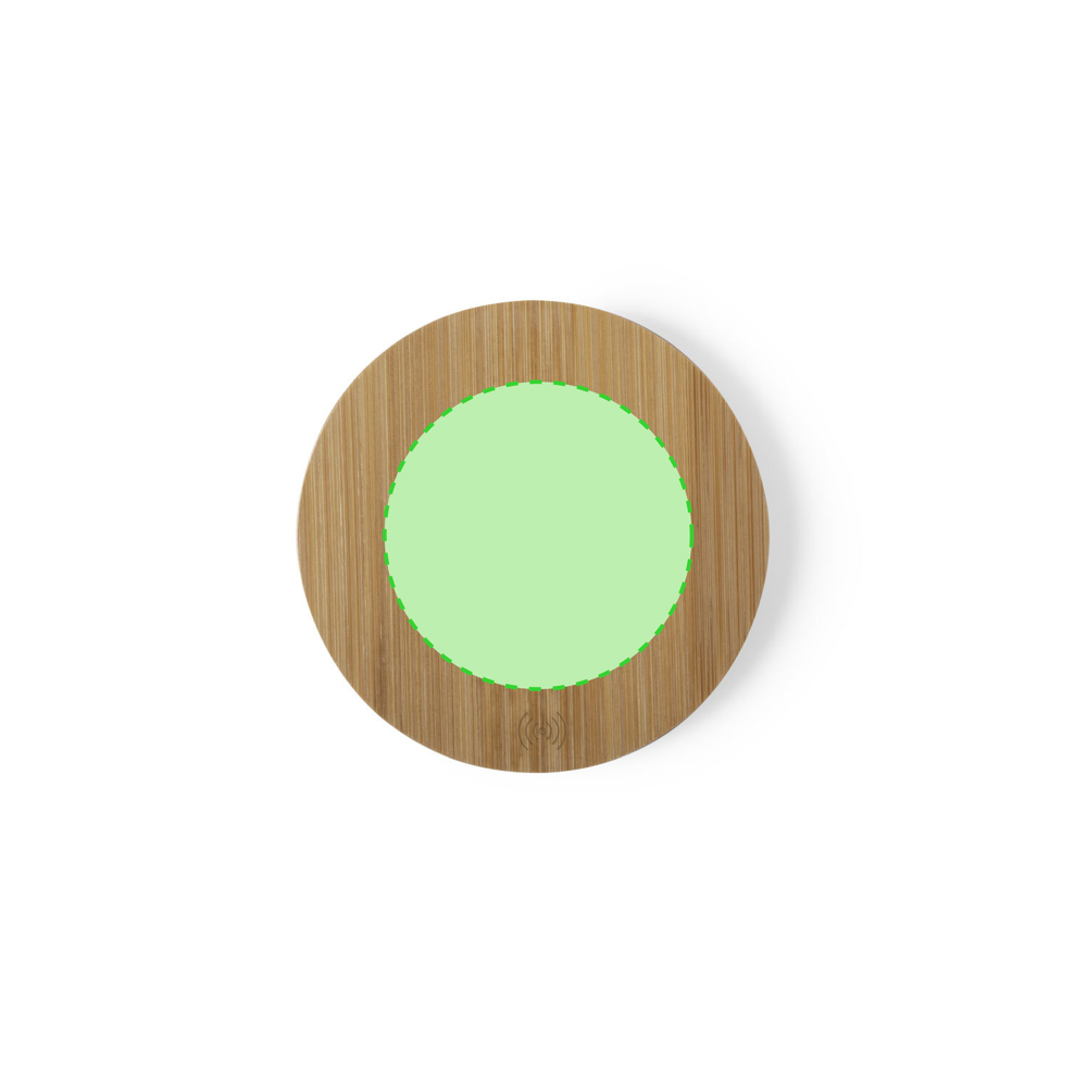 Drahtloses Ladegerät in Naturausführung, mit Kreis-Design. Schale aus Bambus, aus natürlich geschnittenen Bambusstücken. Ladeanzeige und kompatibel mit Geräten, die mit drahtloser Ladetechnologie ausgestattet sind. Großer Druckbereich und präsentiert in einer attraktiven, individuellen Öko-Design-Box.